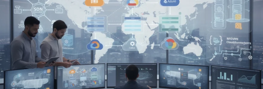 Cette centralisation du contrôle ne signifie pas un point de défaillance unique : les architectures SDN modernes sont conçues avec une forte redondance du contrôleur, parfois réparti sur plusieurs zones de disponibilité. Le dataplane reste distribué au plus proche des charges de travail, ce qui garantit des performances élevées. L’intérêt pour vous, en tant qu’architecte ou administrateur, est de disposer d’un « poste de pilotage » unique pour l’ensemble du réseau virtuel, qu’il soit déployé sur AWS, Azure, Google Cloud ou dans un environnement hybride.
